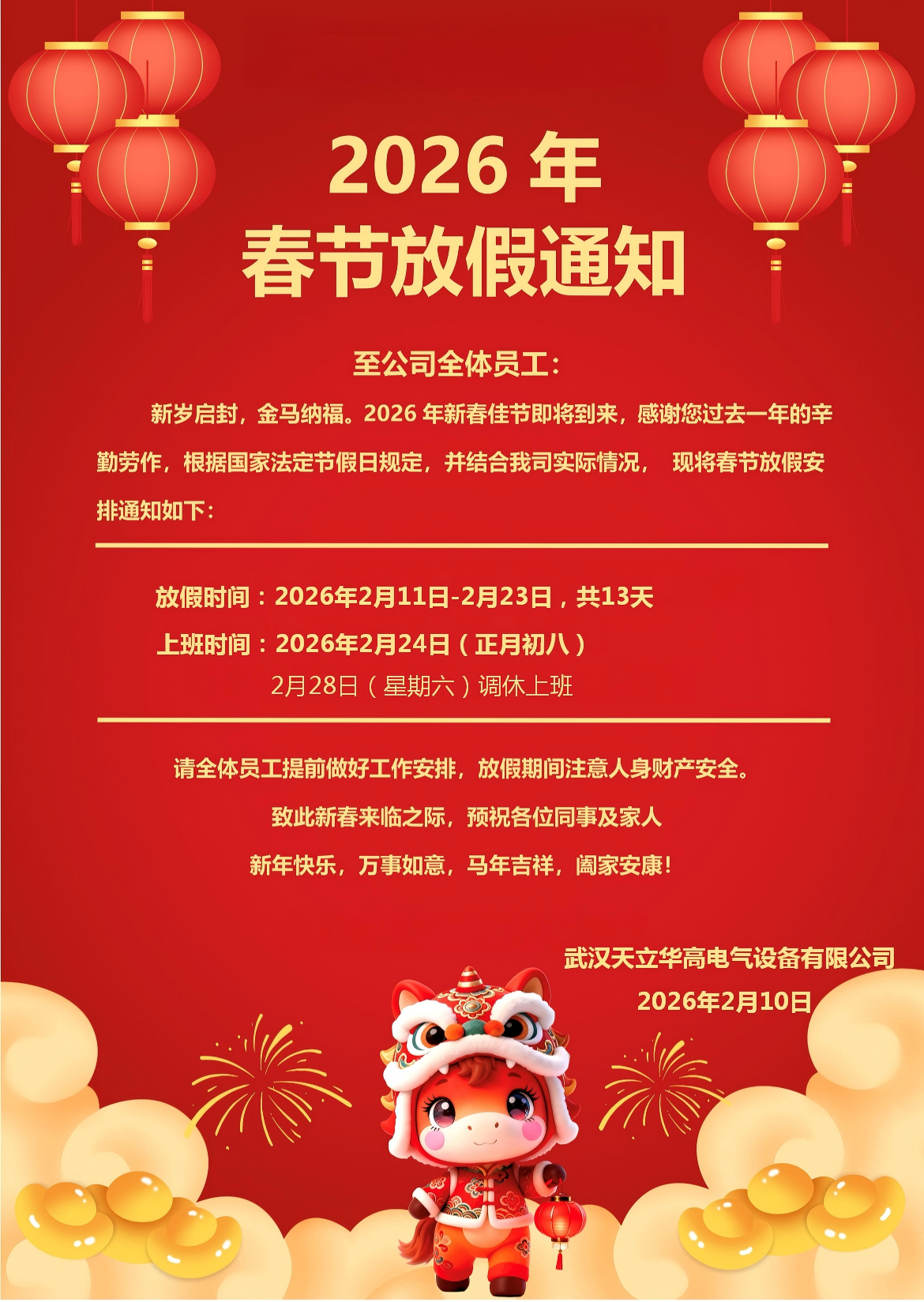 2026年春節放假通知